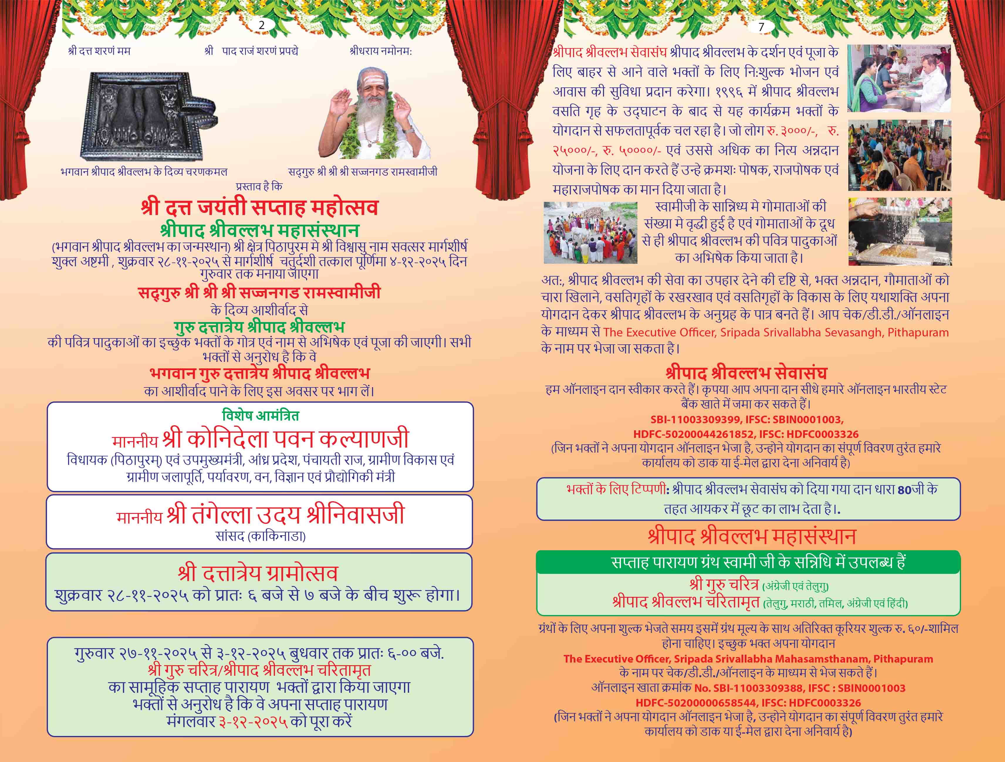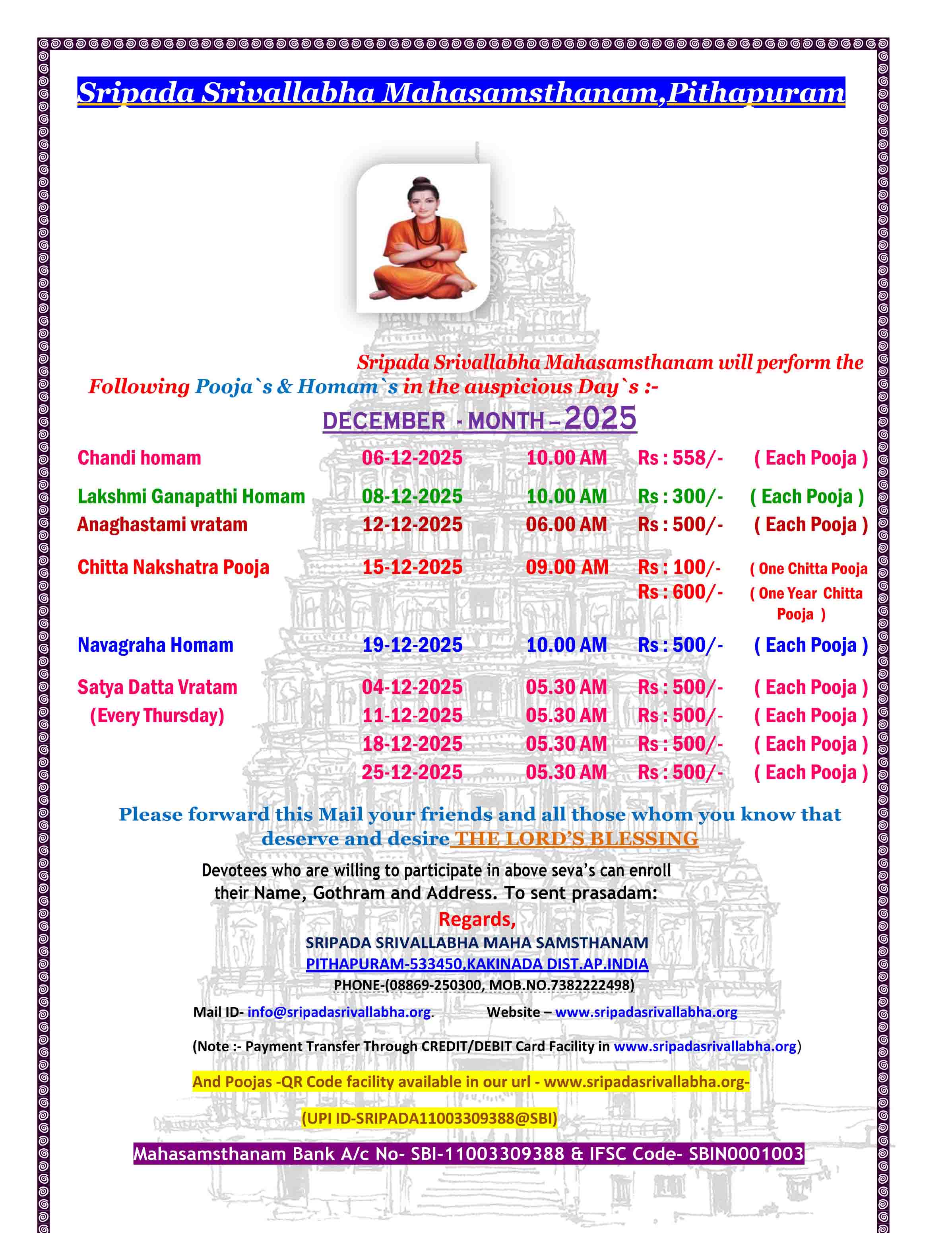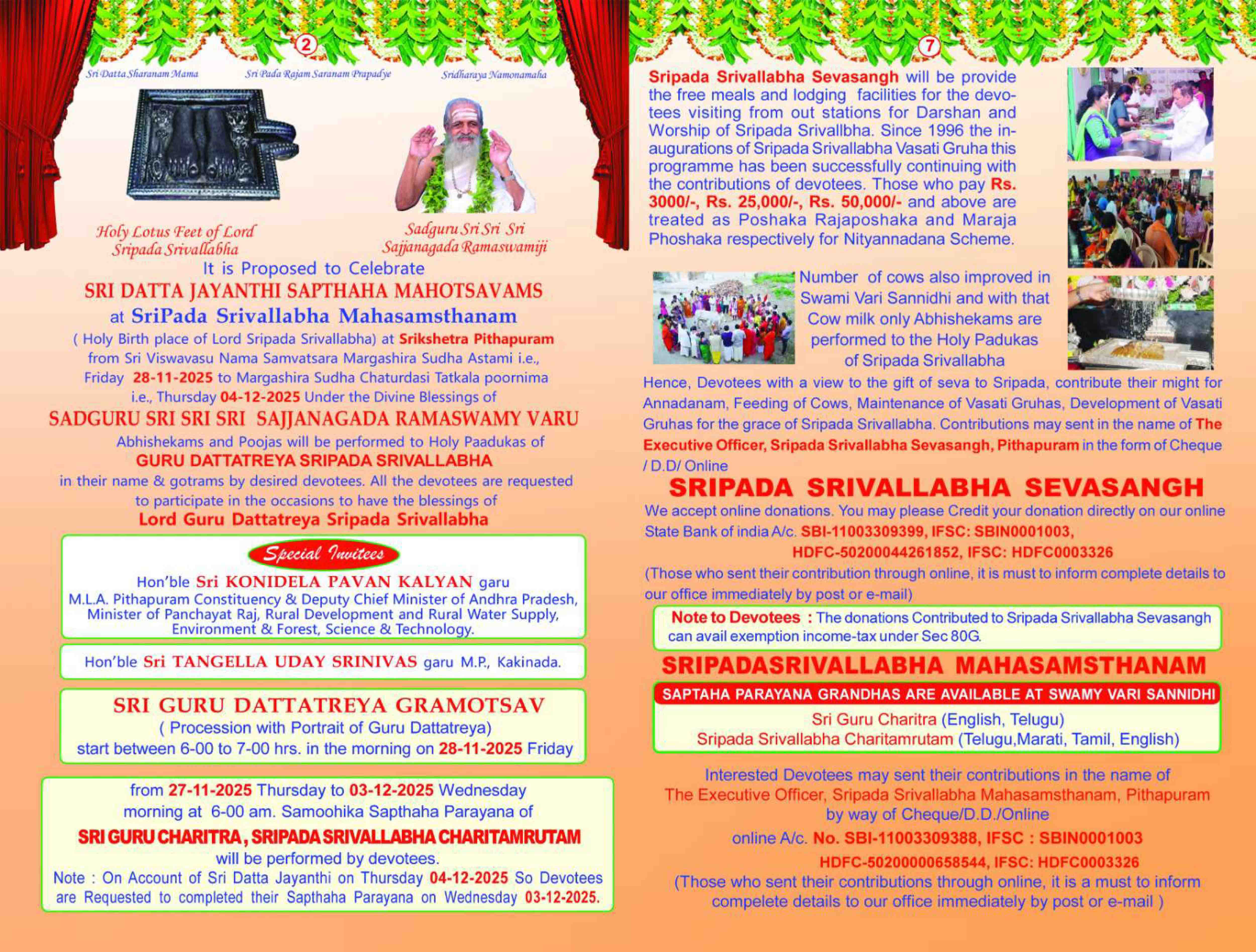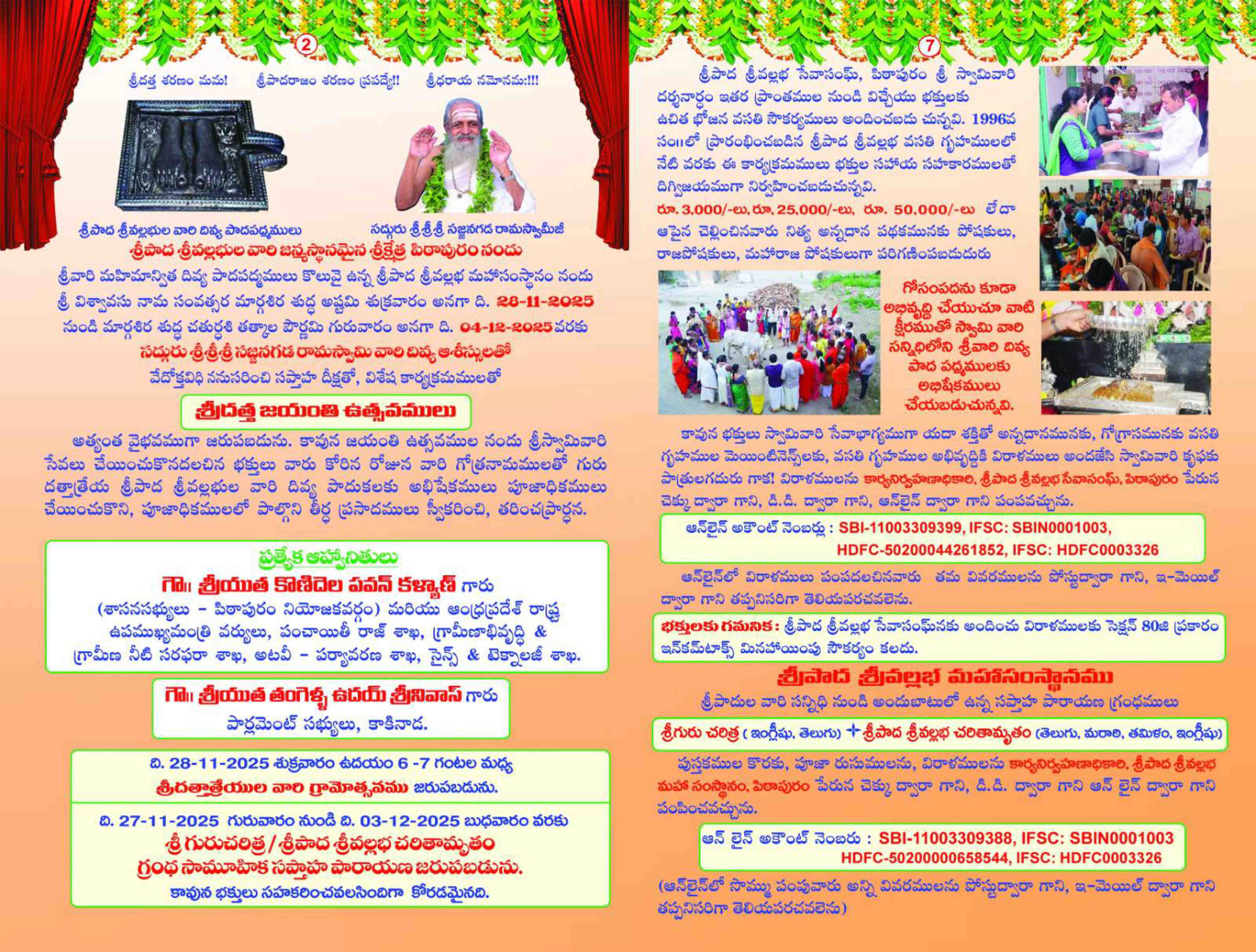 *If Any One Transfer Money Please Provide Scanned Copies Of Proof To info@sripadasrivallabha.org .*