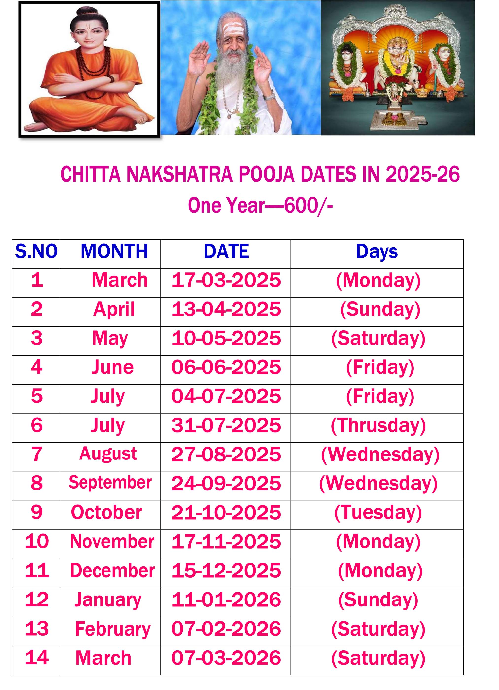 Click Here to Register CHITTA NAKSHATRA POOJA