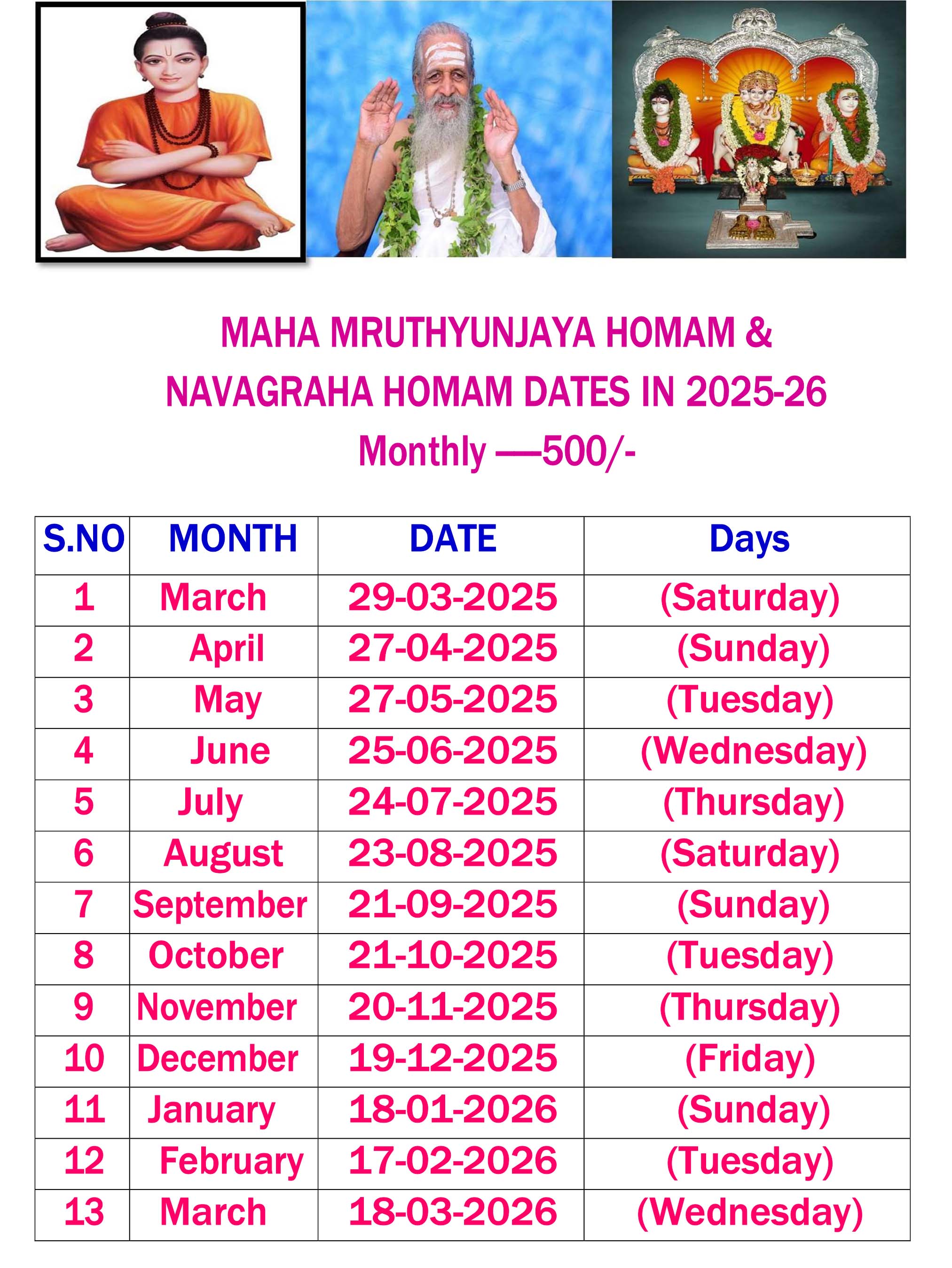 NAVAGRAHA HOMAM DATES
