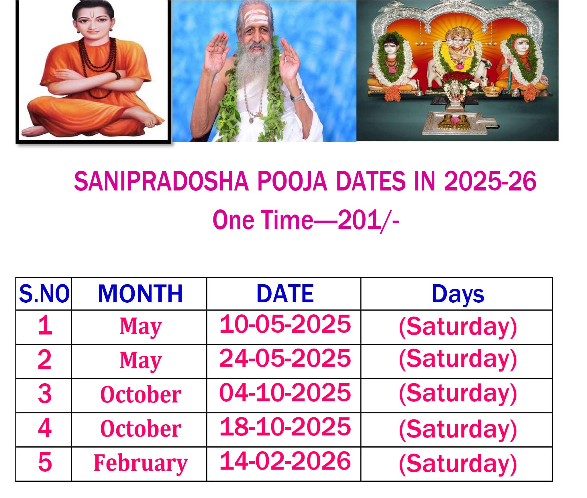 SANIPRADOSHA POOJA DATES